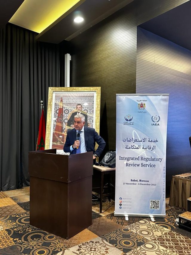 Rabat, le 27 novembre 2023 – L’Agence Marocaine de Sûreté et de Sécurité Nucléaires et Radiologiques (AMSSNuR) a organisé le 27 novembre 2023 à Rabat, la réunion d’ouverture de la mission de l’Agence Internationale de l’Energie Atomique (AIEA) connue sous le nom IRRS ‘Integrated Regulatory Review Service’ visant à renforcer et à améliorer l’efficacité de l’infrastructure réglementaire nationale en matière de sûreté nucléaire et radiologique et de sûreté des déchets radioactifs et du transport.